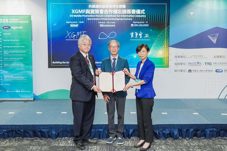 下午議程聚焦次世代通訊趨勢與國際合作討論,由資策會與日本XG Mobile Promotion Forum(簡稱XGMF)簽署合作備忘錄(MOU),並由數位產業署林俊秀署長見證。林俊秀署長表示,希望透過本次MOU的簽署,使台灣與日本在5G、6G、非地面網路 (如LEO) 等次世代通訊應用推廣上展開更緊密的合作,期許台日共築通訊創新應用生態圈,加速創新應用落地並拓展亞太市場。隨後三位國際專家發表主題演講:XGMF的NTN 計畫主持人豊嶋守生博士介紹「日本次世代通訊發展:非地面網路(NTN)推廣計畫與應用案例」;日本Space Shift執行長金本成生則以「用 AI 分析衛星數據:從觀測到洞見」為題,展示如何透過衛星數據與人工智慧分析技術推動應用落地;來自波蘭物聯網暨人工智慧聚落(SINOTAIC)發起者Marek Ostafil則發表「展望太空:歐盟衛星計畫與數據應用」,解析歐洲在太空產業布局與數據應用的最新趨勢。
