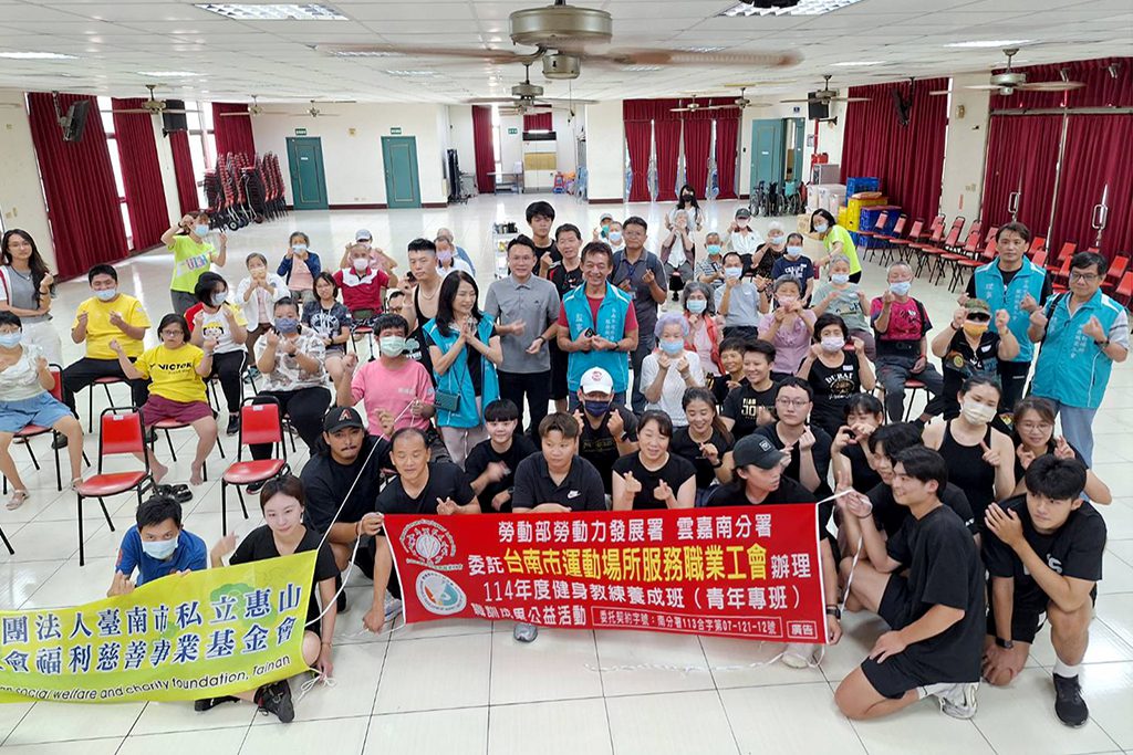 【記者吳玉惠/臺南報導】 勞動部勞動力發展署雲嘉南分署委託台南市運動場所服務職業工會辦理「健身教練養成班(青年專班)02期」於今(10月17日)圓滿結訓。該班培養專業技能的健身教練,更將所學實際應用於高齡與弱勢族群服務,彰顯了職業訓練的社會價值與關懷精神。