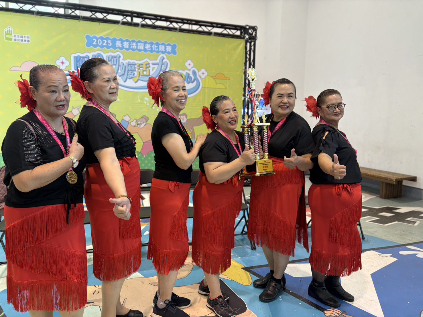 台北市原住民長青學苑以『部落魂、拉丁火鬥牛士傳奇』為隊伍名稱,第一次參加由國民健康署舉辦的「2025阿公阿嬤活力show」,從初賽、區域競賽到全國賽,一路過關斬將,從520支隊伍當中脫穎而出,為台北市拿到銀牌,體現銀髮族理想的健康樂活精神。