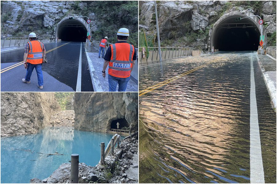 公路局東區養護工程分局監測影像顯示,今日凌晨2時30分左右,堰塞湖的湖水開始漫淹至靳珩隧道西口路面,再經由西口沿著隧道向東漫流,出了隧道口立即從道路兩側流回立霧溪河道,而且水流穩定,未對下游造成重大威脅。