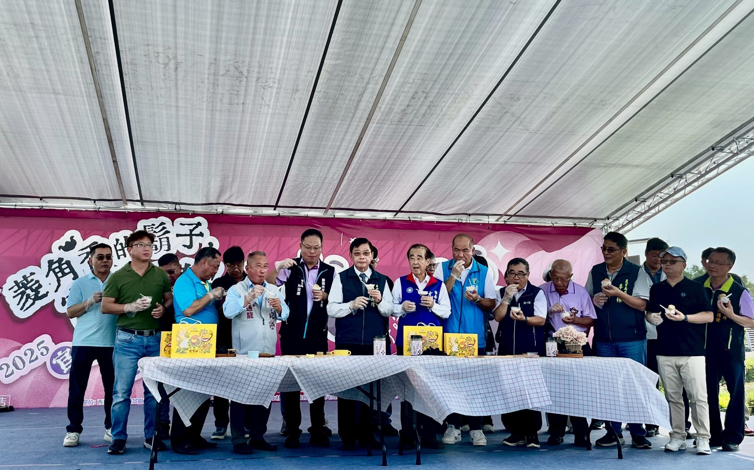 【記者郭忠淵/台南報導】 2025官田菱角藝術節於(18)日在西拉雅國家風景區盛大展開,活動由隆田國小太鼓術隊、官田國小祥獅獻瑞及官田區農會高齡班舞動銀髮熱舞熱鬧揭幕,並舉行模範農民表揚儀式,活動現場連續兩天提供 600份香氣四溢菱角排骨湯供民眾免費試吃,讓大家品味在地美味,也能感受官田豐收喜悅。