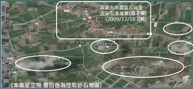 13▲大峽谷砂石山-衛星空照圖下載雲白處為峽谷挖掘地(2009/12/18)