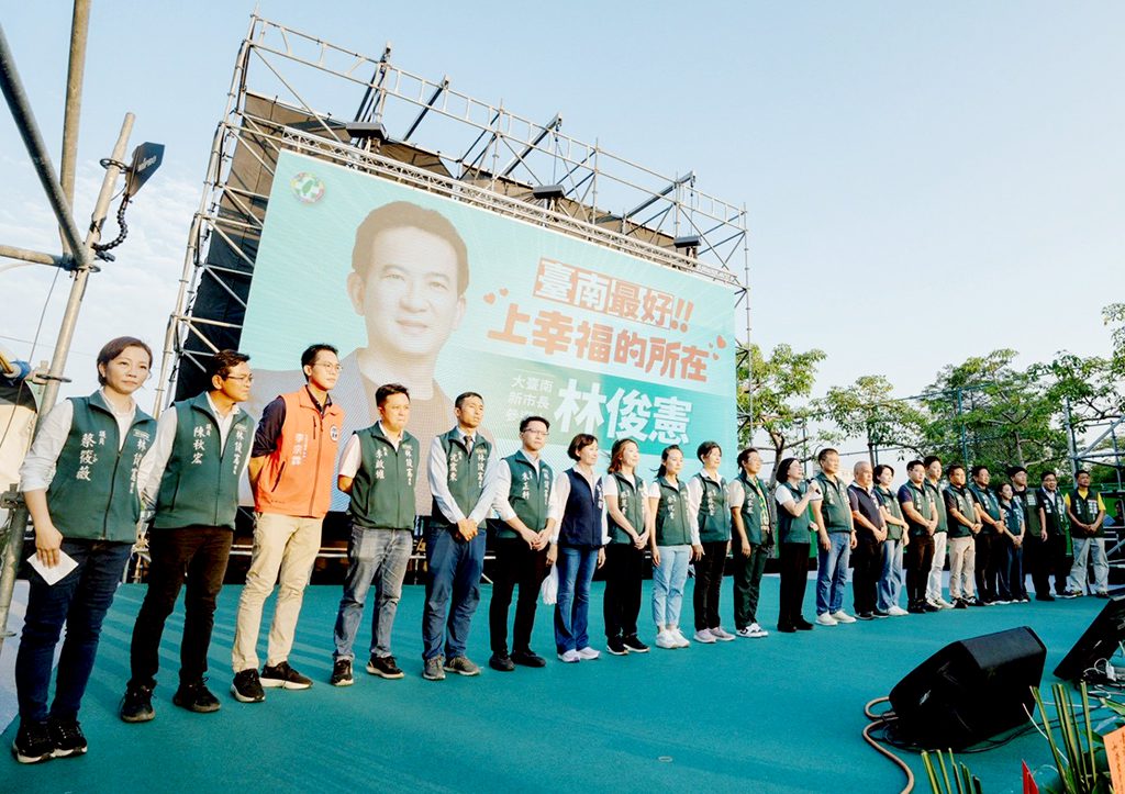 台南市議會議長邱莉莉、副議長林志展更率領多位黨籍議員,包括李宗翰議員、沈家鳳議員、王宣貿議員、蔡蘇秋金議員、陳秋宏議員、余柷青議員、蔡麗青議員、邱昭勝議員、黃麗招議員、朱正軒議員、黃肇輝議員、沈震東議員、周嘉韋議員、林依婷議員、李啟維議員、蔡筱薇議員、李宗霖議員、郭鴻儀議員、鄭佳欣議員代表、楊中成議員代表等人現身同台,象徵林俊憲是唯一能團結黨內的候選人,展現出民進黨團結一致,守護台南的決心。