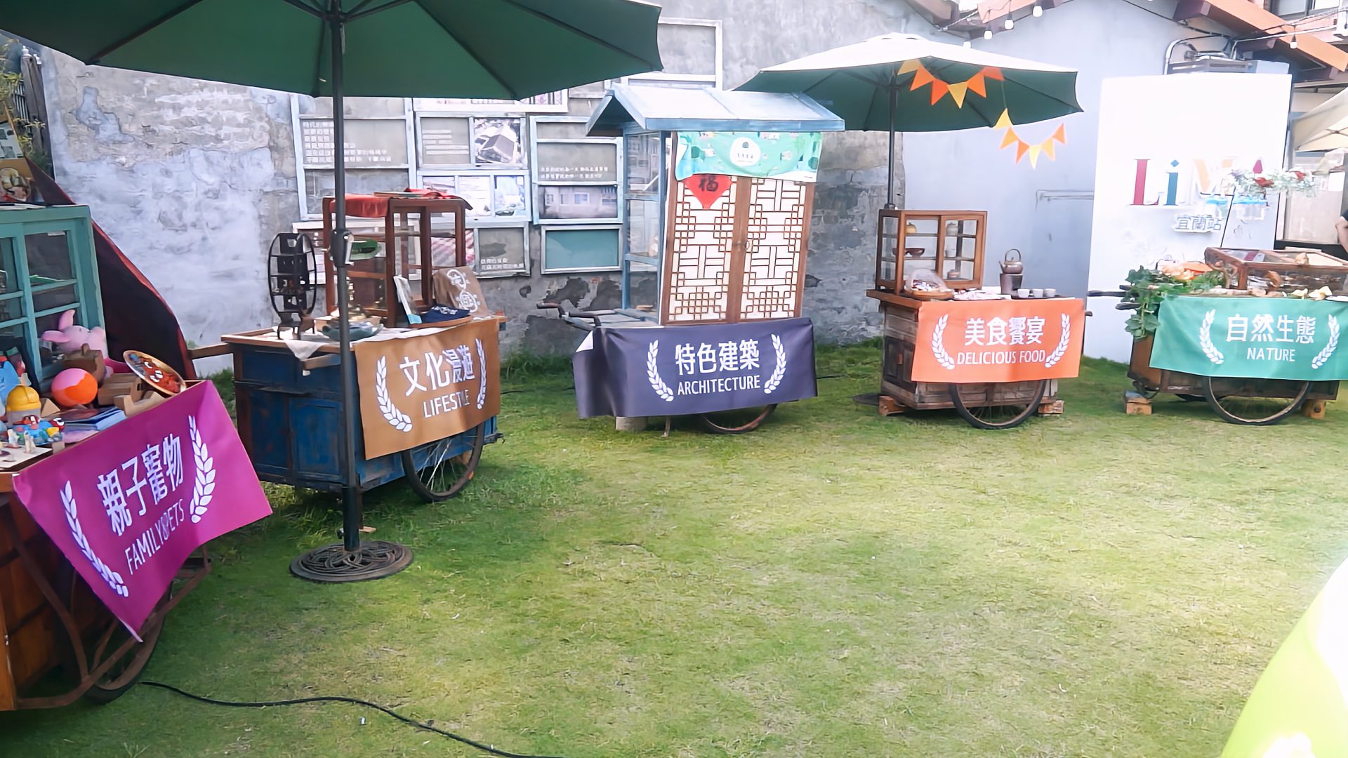 ▲五台主題攤車化身「一間間縮小版的民宿」。(圖/鄭南寶攝)