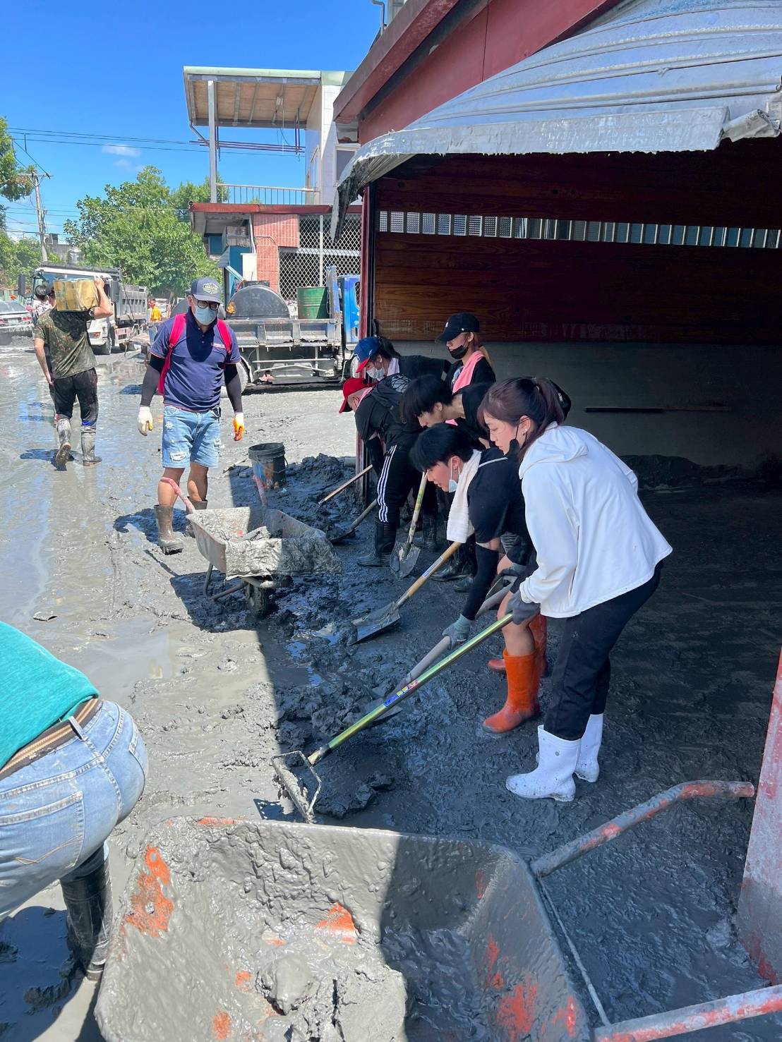 ▲隱慈善會成員日前也到花蓮光復鄉,捐助物資以及清理泥砂。(圖/新北市社會局 提供)