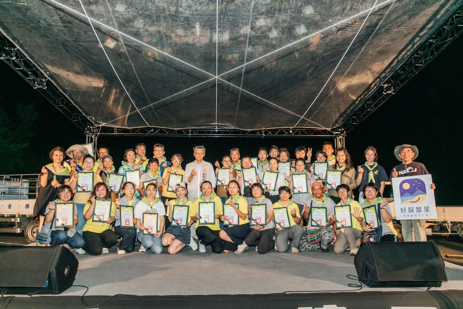 本次活動最受矚目的焦點,是由屏東縣政府培訓完成的「星空解說員授證儀式」,2025年首次共有82位學員完成課程並通過考核,由縣府交通旅遊處黃國維處長親自授證,正式加入屏東「暗空旅遊」的星光引路人。令人感動的是,授證結束後這批新進解說員即上陣現場擔任導覽任務。