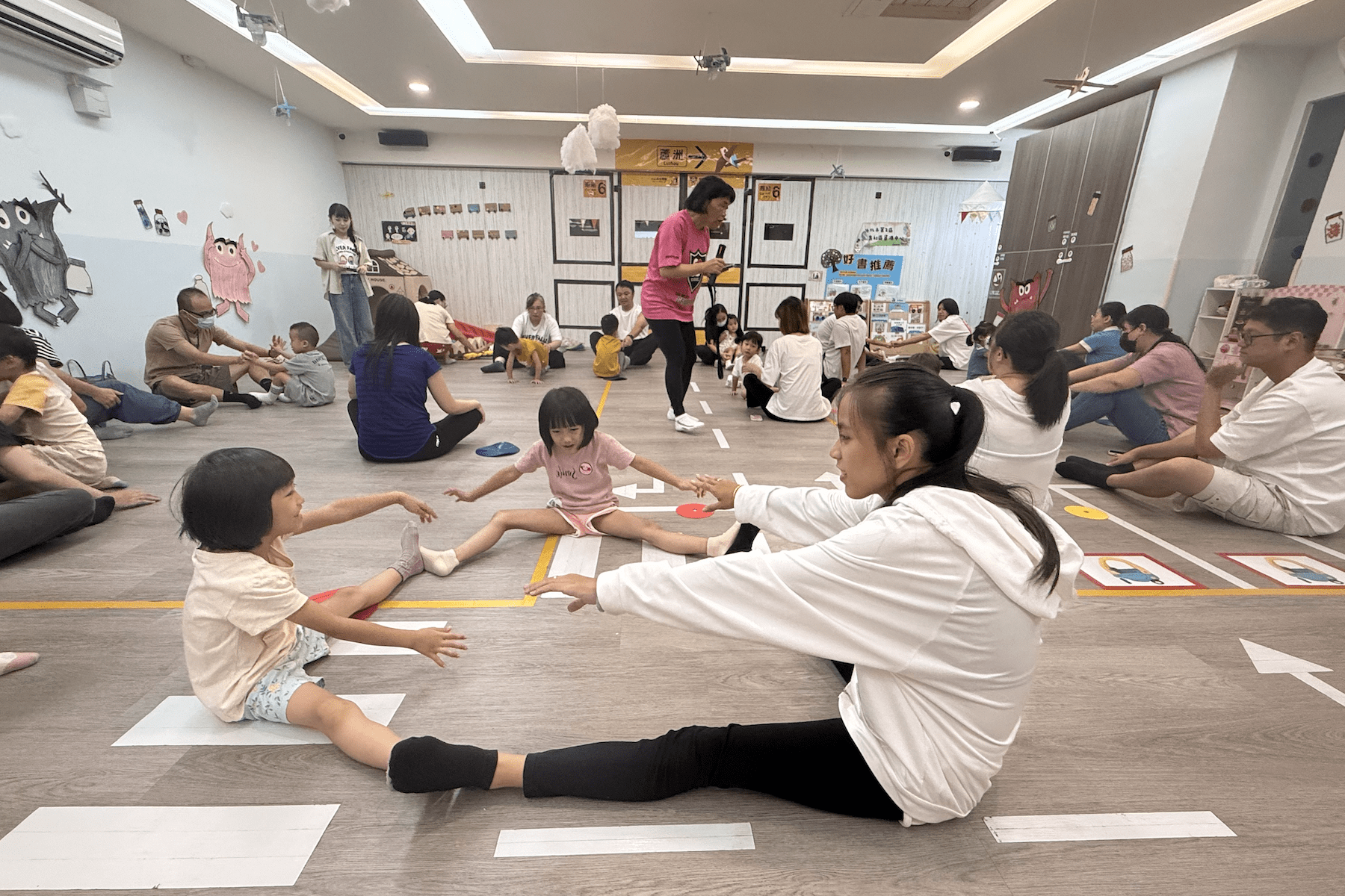 課程由黃雪芳老師及早資中心社工帶領,透過肢體伸展、節奏律動與按摩互動,讓親子一同體驗放鬆與陪伴的時光。黃老師以遊戲化、生活化的教學方式,引導家長觀察孩子的情緒與反應,並在活動中強化親子間的連結與理解,幫助家長從互動中看見孩子的努力與改變。