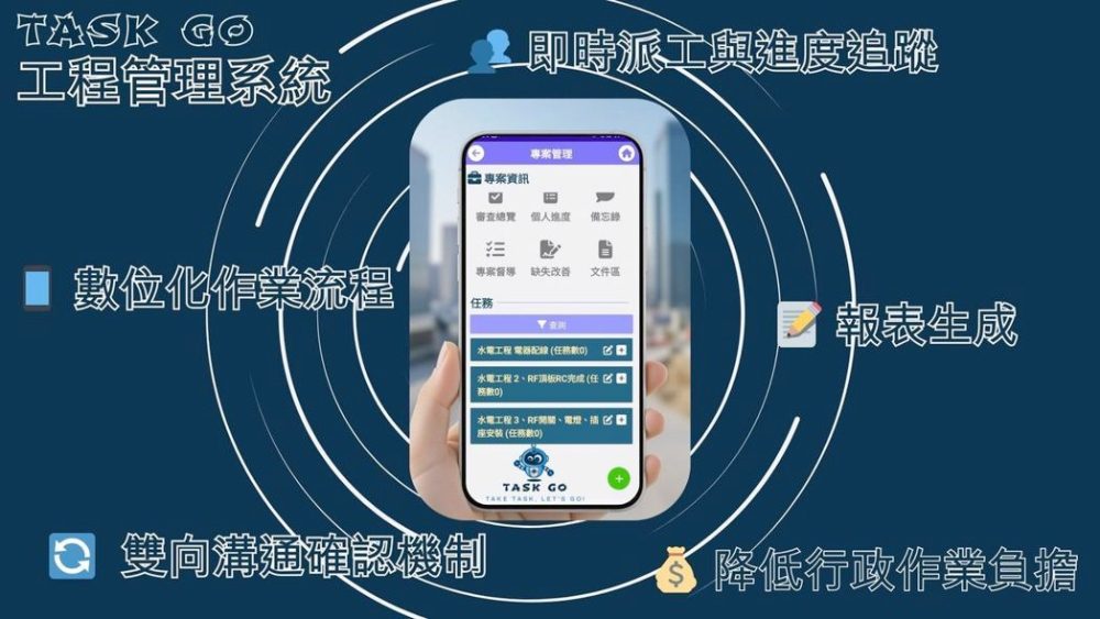 ▲Task Go工程管理系統以「即時派工與進度追蹤」、「數位化作業流程」、「報表自動生成」及「雙向溝通確認機制」為核心,協助工班與管理單位有效掌握施工進度,降低行政負擔,全面提升工地資訊透明度與作業效率。(圖/業者提供)