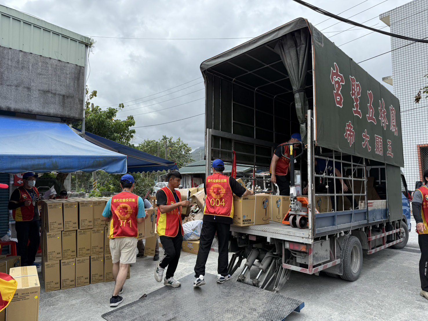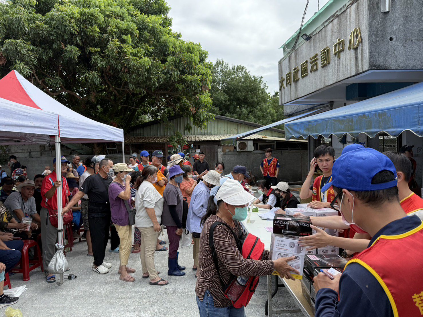 ▲災民依序排隊領取愛心電器產品,場面踴躍有序。