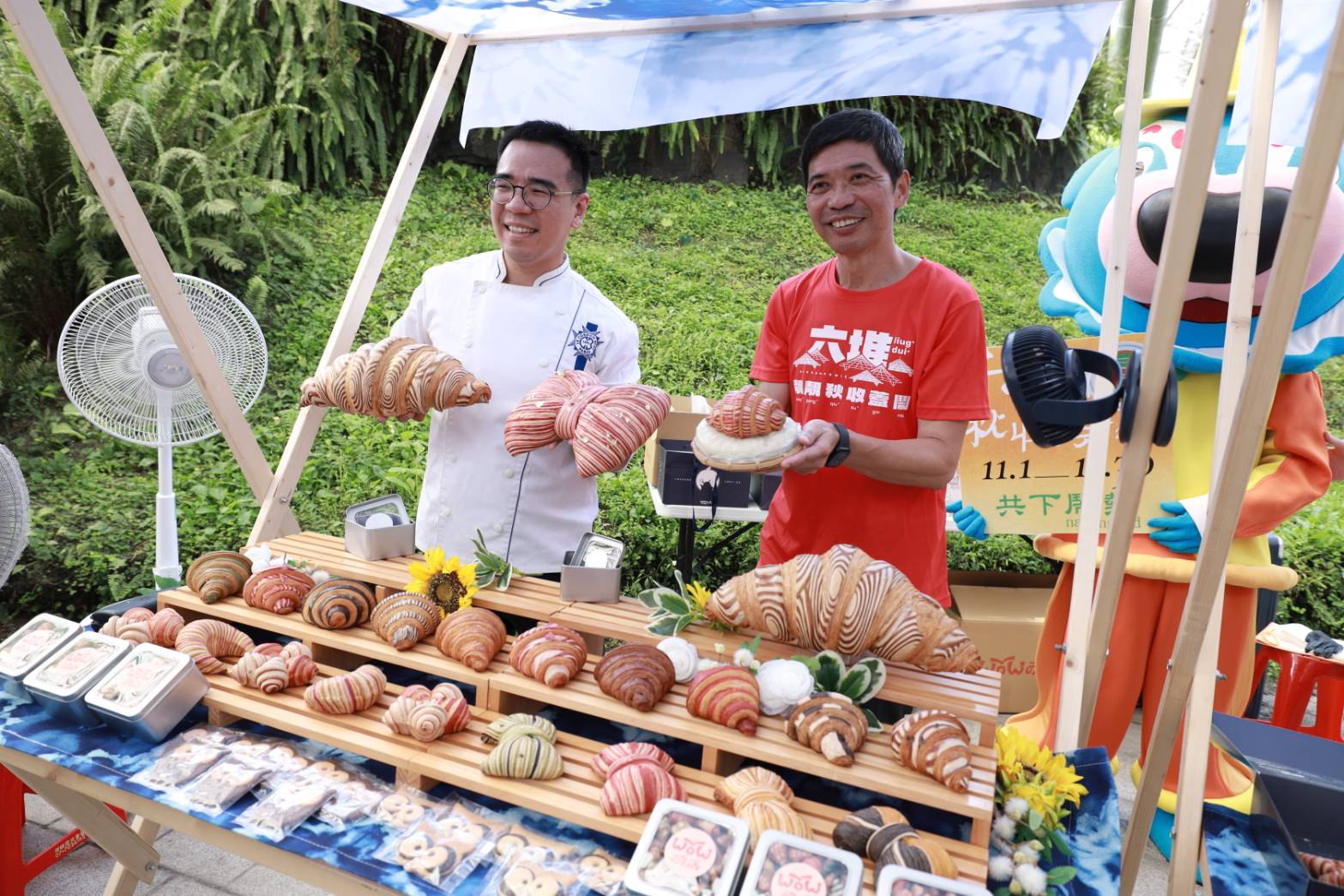 【記者戴英薇/內埔報導】 「2025六堆秋收祭」將於11月1日至30日隆重登場!於今(22)日在六堆客家文化園區舉行熱鬧記者會,現場首度發表由客籍藍帶甜點師李侑昌,與六堆美食達人劉榮招攜手共創的「藍帶客家可頌」。這款結合客家粢粑(麻糬)元素與法式烘焙的限定甜點,以繽紛色彩象徵客家文化多樣性,也宣示六堆秋收祭10週年以「食福・拾福」為主題,將客家飲食文化融入系列活動設計之創意。