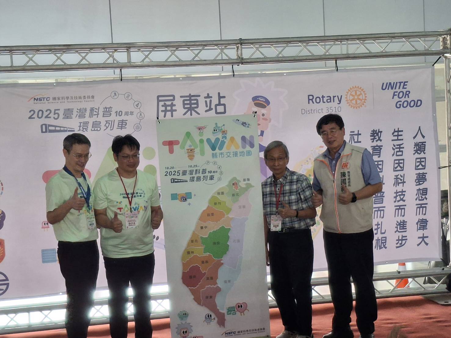 【記者范家豪/屏東報導】 屏東縣政府為使學生能體察科學樂趣,並以科學探究的精神融入在日常活動中 ,結合國家科學及技術委員會、中華民國產業科技發展協進會、國立屏東科技大學及國立海洋生物博物館等單位,共同辦理「2025臺灣科普環島列車」,今(22)日在屏東及枋寮火車站盛大登場,透過火車車廂內的科普學習與車站大廳的科學闖關體驗,激發學生科學學習熱忱。