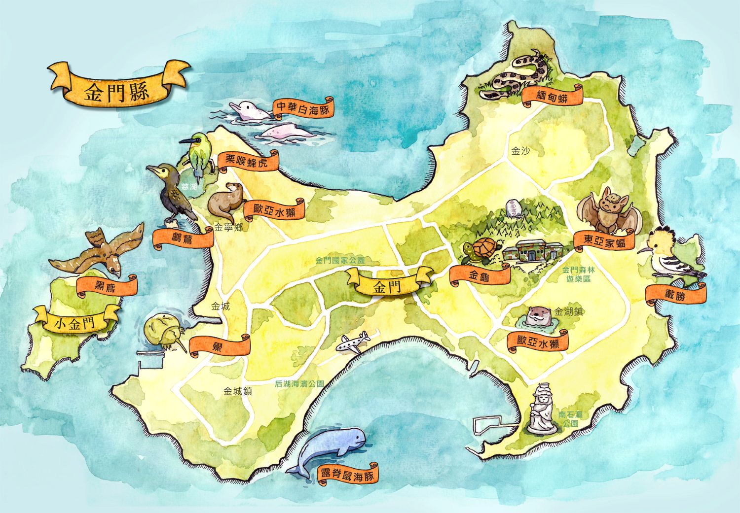 ▲金門縣野生動物生態地圖。(圖/辺金勝老師繪製提供)