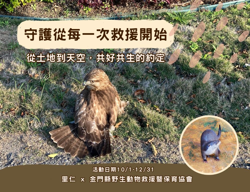 即日起至12月31日止,里仁與「金門縣野生動物救援暨保育協會」攜手發起「守護野生動物回家」捐款活動,支持野生東方鵟重返天際,讓歐亞水獺與金龜回歸棲地在這片珍貴的金門島嶼上。凡單次捐款者,可獲由里仁贊助、印有多款綠色保育動物圖樣的「綠保雙層杯」乙個;定期定額捐款者,則可獲得守護翡翠樹蛙棲地的「淨源茶場」所贊助「熟香烏龍茶禮盒」乙盒,請參考活動詳情:https://www.leezen.com.tw/activity/detail/172