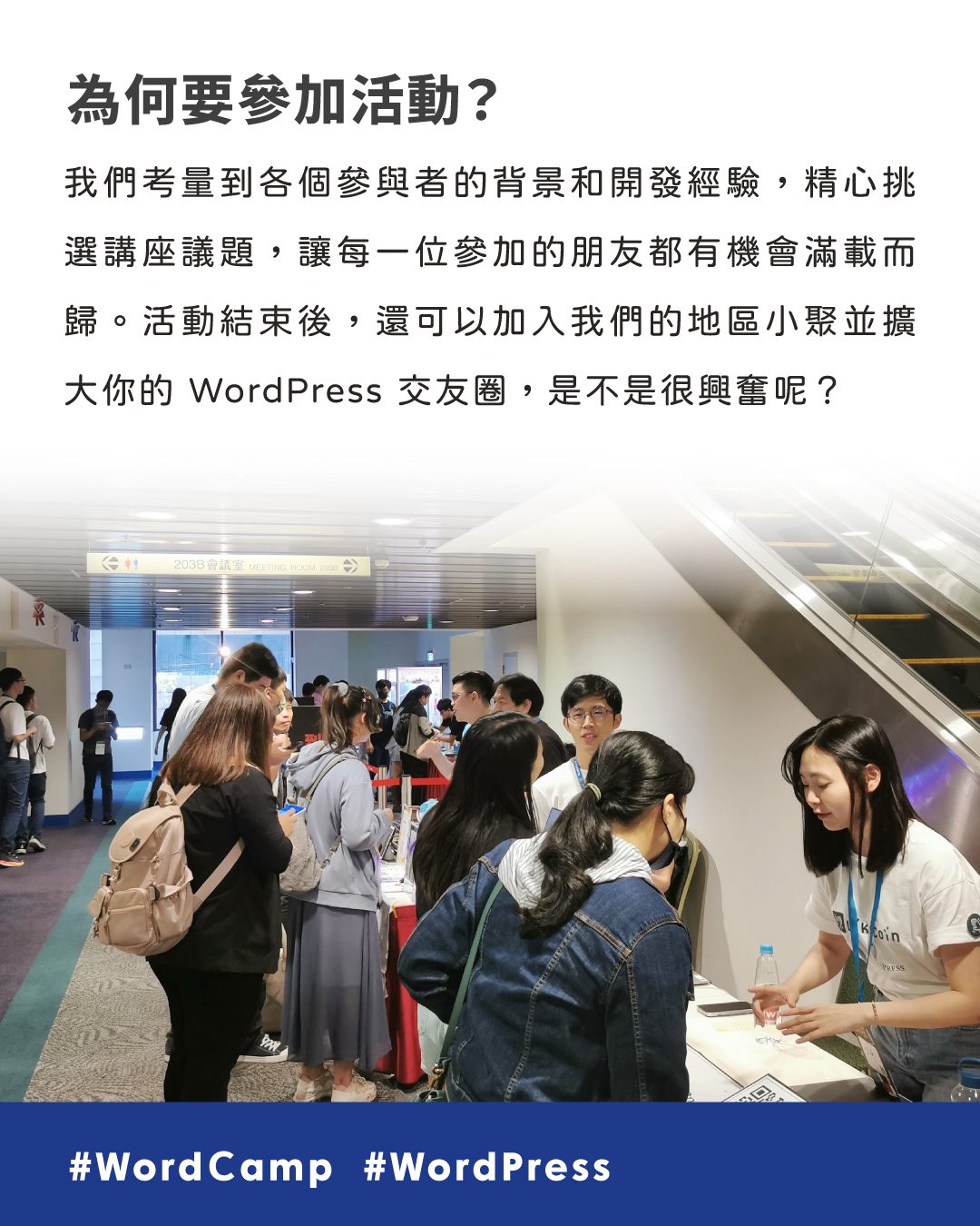 主辦單位表示:「我們希望打造一個讓開發者、設計師、行銷人與創業者能彼此啟發的場域,促進南台灣與全球 WordPress 社群的合作與成長。」