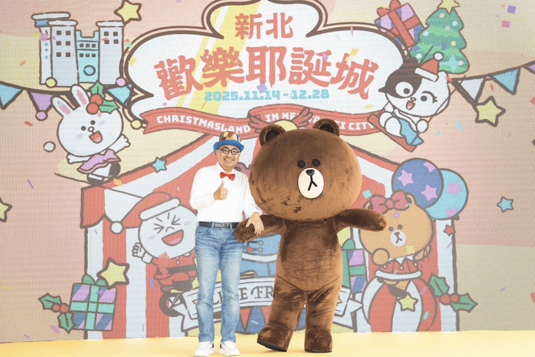 2025新北歡樂耶誕城以「馬戲嘉年華」為主題,與全球知名的「LINE FRIENDS & LINE FRIENDS minini」角色IP品牌合作,打造可愛趣味的各式裝置,將分布在市民廣場、站前廣場、萬坪公園、府中廣場以及板橋轉運站等區域,而今(23)日記者會也揭曉活動10大亮點,包含「全臺唯一!夢幻馬戲主燈華麗登場」,主燈以「歡樂馬戲棚」為主題,結合燈光、音樂與動態機械,打造出夢幻的主燈秀、「萬眾矚目!奇幻馬戲大秀震撼開幕」,在開城夜晚將帶來精采絕倫的馬戲大秀、「全新展演!演唱會投影及LED舞臺首度連動」,運用光影隨音樂節奏變幻,創造沉浸式的聲光體驗、「全球知名 IP!LINE FRIENDS & LINE FRIENDS minini新北全燈區總動員」,可愛的LINE FRIENDS熊大、熊美、莎莉、兔兔與minini夥伴們lenini、salini、bnini現身燈區,打造限定版耶誕造景與打卡點、「創新科技!美味探索五感沉浸體驗」,以五感沉浸體驗區為主題,全方位感受科技帶來的趣味與驚喜、「高吸睛度!全新裸視彩幕裝置強勢來襲」,運用大型貨櫃營造裸視3D彩幕技術、立體特效,為耶誕城注入全新視覺魅力、「秒飛國外!全臺最美歐洲童話村」,站前廣場打造成歐洲童話村,讓人彷彿漫步歐洲冬日場景、「多組機械裝置動感展演」,燈光、機械與聲效交織,打造最具體驗感與科技感的耶誕魅力讓你目不暇及、「全面宣傳!7-11廣告行銷遍布全臺」,全臺 7-ELEVEN 店內合作同步展開宣傳,全面行銷 2025 新北歡樂耶誕城資訊,以及「可愛滿載!CHOCO熊美爆米花桶限定販售」,耶誕城推出限量版「CHOCO熊美爆米花桶」,粉嫩造型萌度破表!