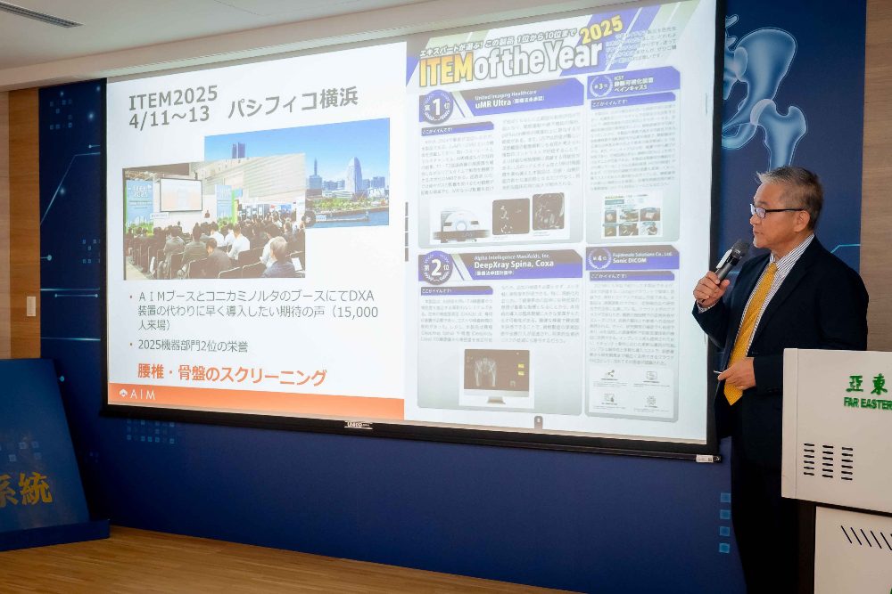 此次發表會邀請AIM Japan 株式会社松本健一先生出席,分享日本在AI骨鬆偵測的臨床應用與政策經驗。他指出,日本政府已將骨鬆篩檢納入國家健康政策,目標2032年前將篩檢率從5.5%提升至15%。DeepXrayDeepXrayTM骨技術已於日本骨質疏鬆症學會發表,其腰椎與髖部影像分析與DXA結果高度一致(相關係數0.901),被公認為早期診斷與骨折風險預測的高效工具。