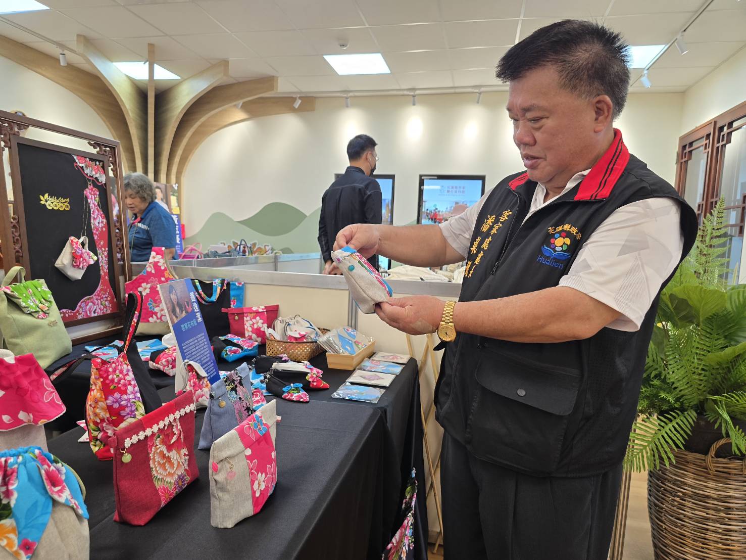 縣政府客家事務處長潘乾鑑說明,今年博覽會規劃「產業」、「技藝」、「藝術」三大主題展區,各地工藝師齊聚花蓮,從傳統工藝的油紙傘、皮雕、編織,延伸至融合創意設計的蠟染與拼布,充分展現客家工藝傳統與創新的多元風貌。