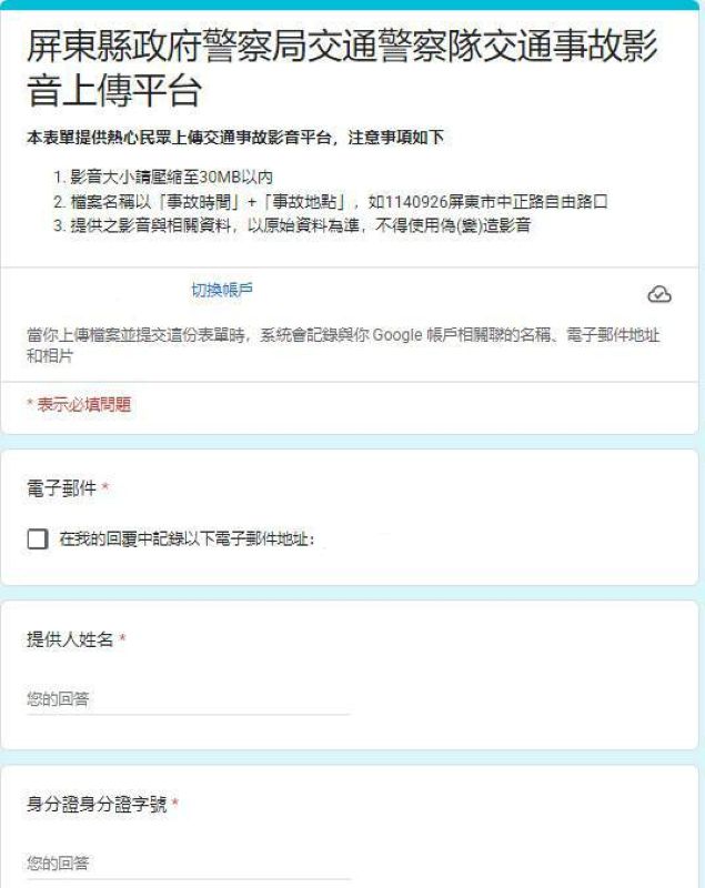 為確保資訊正確與溝通順利,民眾上傳影像時,需填寫姓名、聯絡電話、身分證字號、聯絡地址及電子郵件信箱,便於警方進一步釐清案情或補充查詢。平台資料傳輸皆採安全機制保障,請民眾安心使用。