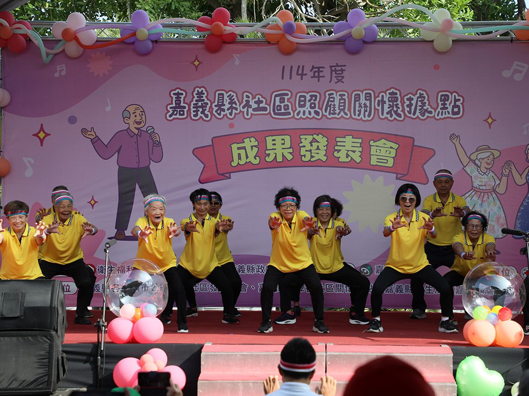 嘉義縣114年度社區照顧關懷據點成果發表26日在縣治特區戀人公園盛大登場。來自全縣18個鄉鎮市的關懷據點夥伴齊聚一堂,不僅展示長者的創意與才華,也呈現社區關懷據點的多元發展。