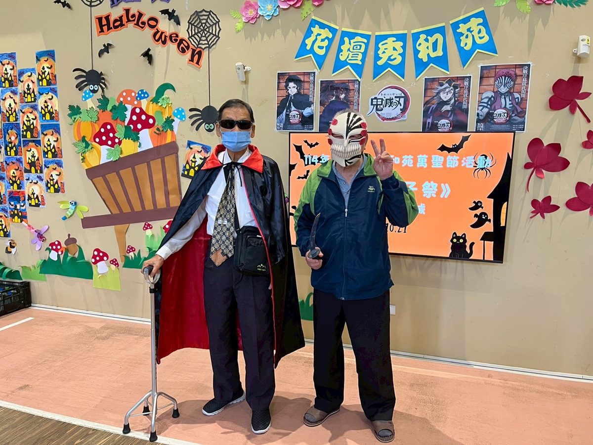 萬聖節不只是孩子的節日!花壇秀和苑日照中心今(27)日舉辦《鬼滅親子祭:無限年齡城》,邀請鄰近貝威幼兒園小朋友共襄盛舉,讓長輩與孩子在音樂與笑聲中共度熱鬧又溫馨的跨世代萬聖節。