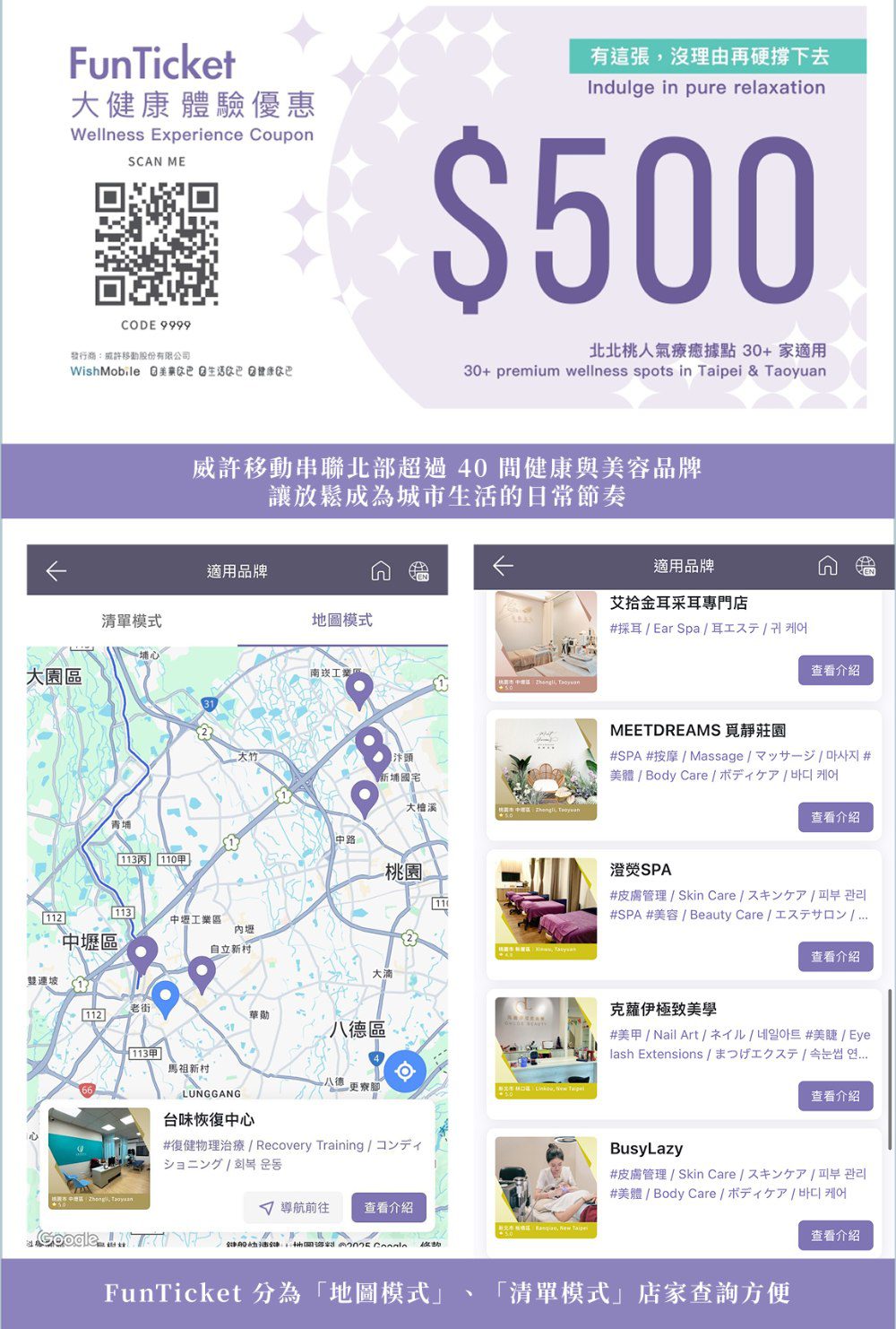 威許移動旗下品牌「美業歐巴」與生活服務平台「Codays」共同推出的《FunTicket 健康優惠體驗活動》,讓商務之旅不止於工作,也能延伸為一場城市放鬆的探索。