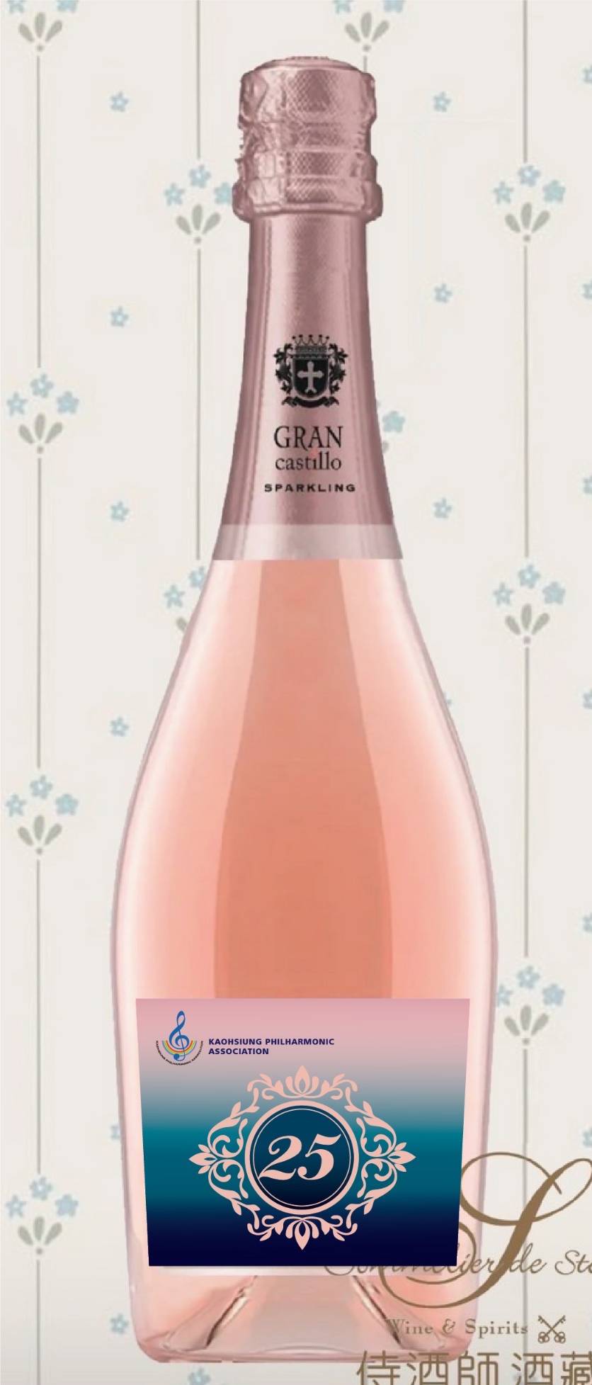 為慶祝創會25週年,協會推出限量粉紅氣泡酒,瓶身酒標由會員畫家范秀芳操刀設計。范秀芳以「理性藍與感性粉的交融」為創作核心,採用由深藍至粉玫的漸層底色,象徵理性深度與情感溫度的交織,與音樂的層次感相呼應。她說明設計中的三重意象:「學無止境的藍」(象徵知識與成長)、「心胸寬闊的藍」(代表包容與分享)以及「音樂深度的藍」(象徵音樂靈魂的延伸)。酒標中央以粉紅金燙印呈現「25」字樣,並搭配協會譜號標誌的金藍旋律線條,整體典雅且具現代藝術感,為25週年留下優雅而永恆的紀念。