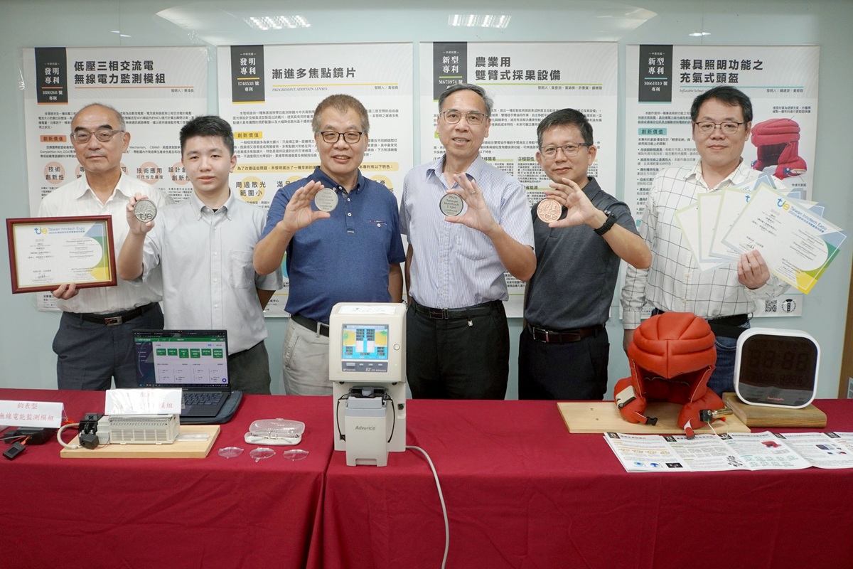 吳建一研發長表示,「2025台灣創新技術博覽會」由經濟部、國科會、教育部等11個中央部會聯合主辦,於10月16日至18日在台北世貿中心舉行。大葉大學在競賽中脫穎而出,資訊工程學系蔡渙良主任的「低壓三相交流電無線電力監測模組」獲頒銀牌,電機工程學系黃登淵教授的「農業用雙臂式採果設備」榮獲銀牌,視光學系黃敬堯副教授的「漸進多焦點鏡片」獲得銀牌,設計學系賴建源副主任的「兼具照明功能之充氣式頭盔」獲頒銅牌。