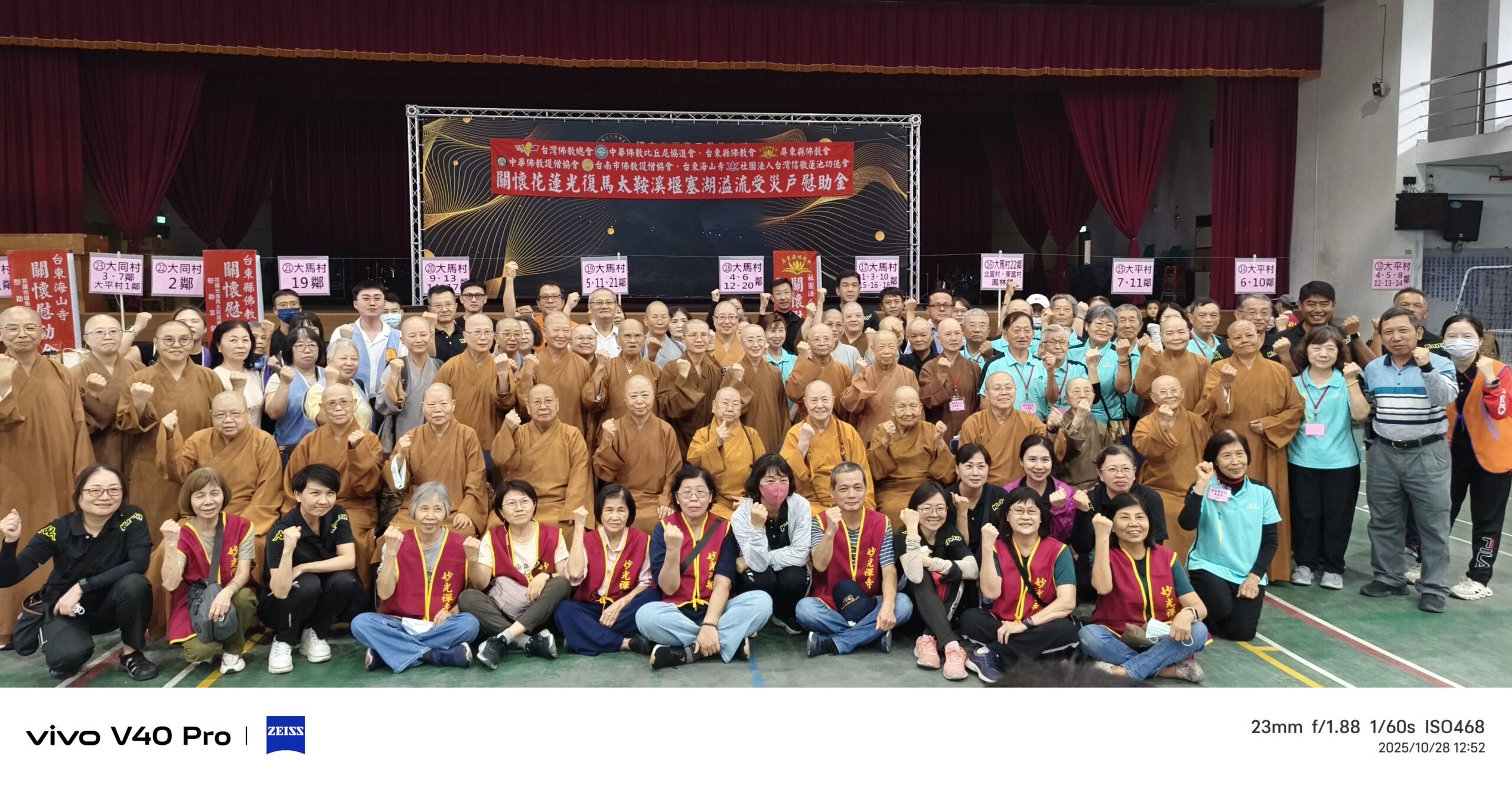 此次由台灣佛教總會、中華佛教比丘尼協進會及屏東縣佛教會跨縣市協力發起,為罹難與失聯者家屬每人發放3萬元慰助金,受災家庭每戶5,000元,並獲皂福公司捐贈100箱洗衣精,讓善心化為行動,陪伴災民重拾希望。在善款發放現場,氣氛莊嚴而溫馨。台灣佛教總會理事長宏安長老尼、中華佛教比丘尼協進會理事長常露長老尼、屏東縣佛教會理事長釋見引法師率領義工團隊親赴現場,雙手合十為往生者誦願祈福,並一一向罹難者家屬深深一鞠躬,傳遞最誠摯的關懷。這場跨宗派、跨地域的慈悲行動,讓仍在復原中的花蓮,重新被信念與愛的光照亮。